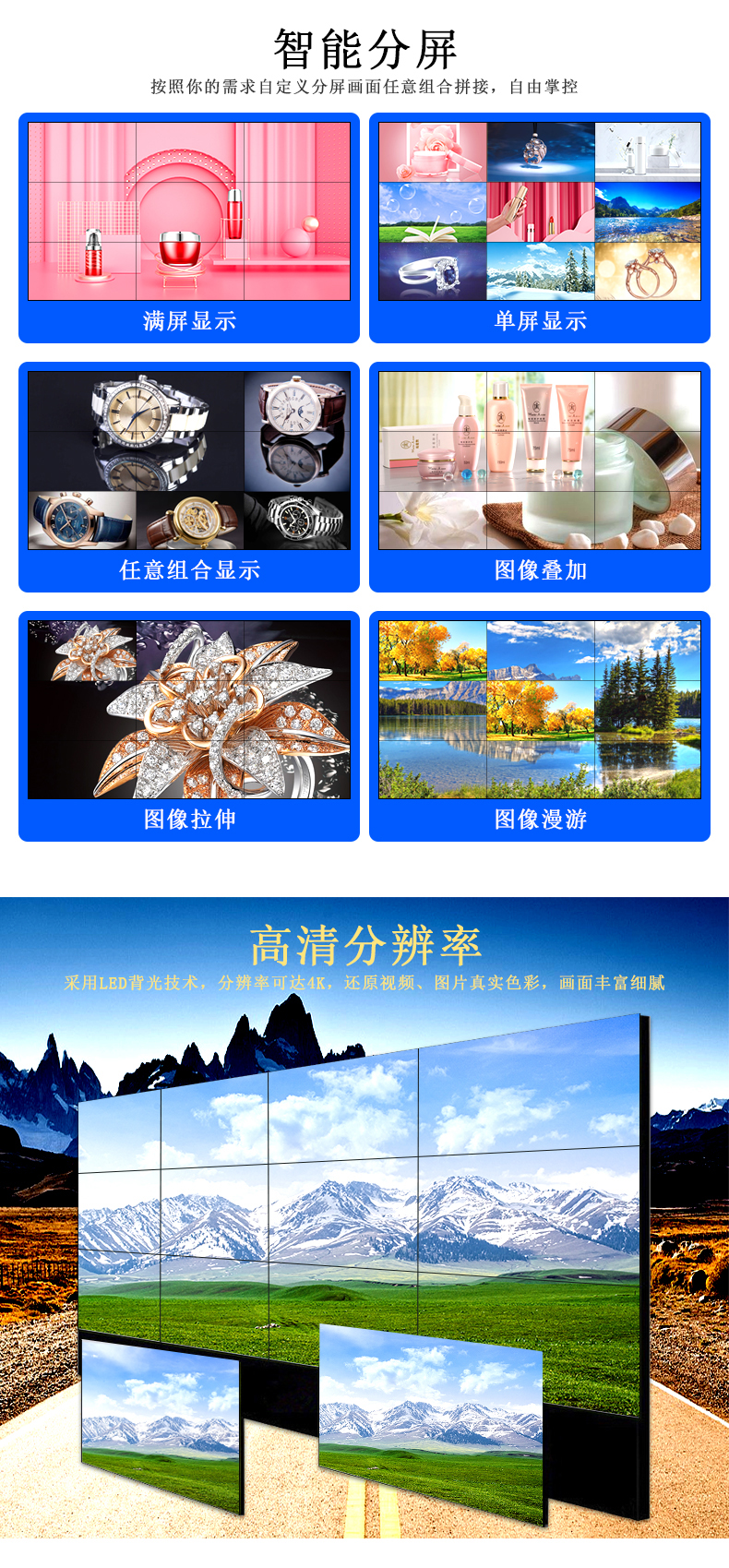 【美佳愛-4k液晶拼接屏生產廠家電話400-997-9971】京東方55寸液晶拼接屏-拼縫3.5mm產品通過ISO9001_3C_節能認證等30多項認證,主營LG/京東方/三星大屏幕電視墻,其尺寸有32寸40寸43寸46寸49寸55寸65寸75寸液晶拼接單元,也有曲面,弧形,柔性,無縫LED顯示屏,顯示器,超窄邊高清監視器,提供企業展廳展示,KTV,酒吧,會議室,視頻監控系統解決方案設計-報價-安裝施工-售后超窄邊維修等服務