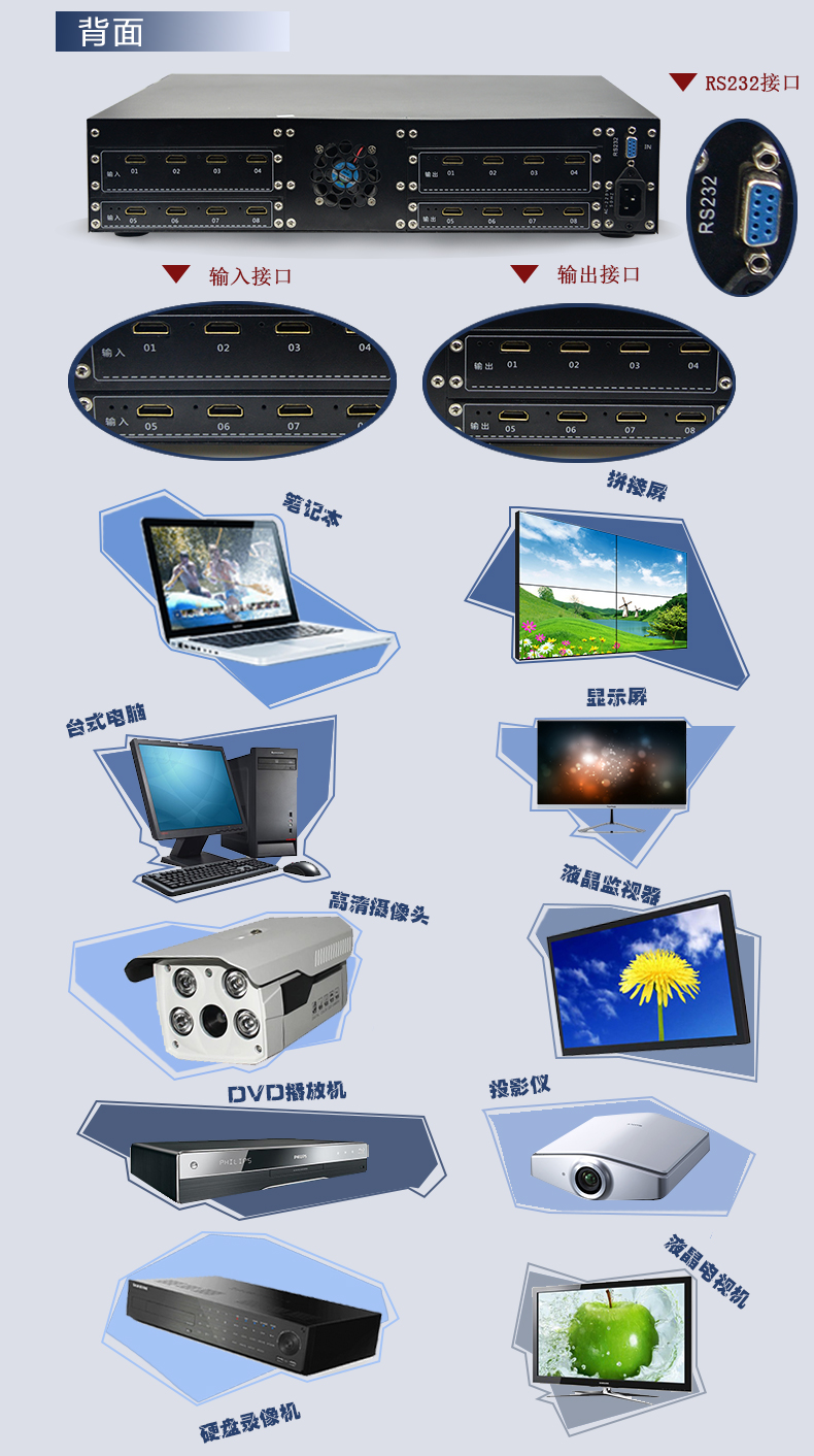 【深圳市美佳愛-矩陣切換器,視頻拼接處理器生產廠家電話400-997-9971】HDMI拼接矩陣處理器產品通過ISO9001_3C認證,型號規格有4進,8進,12進,16進,24進,32進,48進,64進,128路輸入,4出,8出,12出,16出,24出,32出,48出,64出,128路輸出,專業提供LED視頻處理器,監控音視頻矩陣切換器,DVI/SDI/RGB/HDMI/VGA混合矩陣,外置拼接處理器,視頻服務器,云處理器,液晶大屏幕處理器,視頻分配器,網絡高清數字解碼矩陣主機生產廠家,高品質,穩定性強